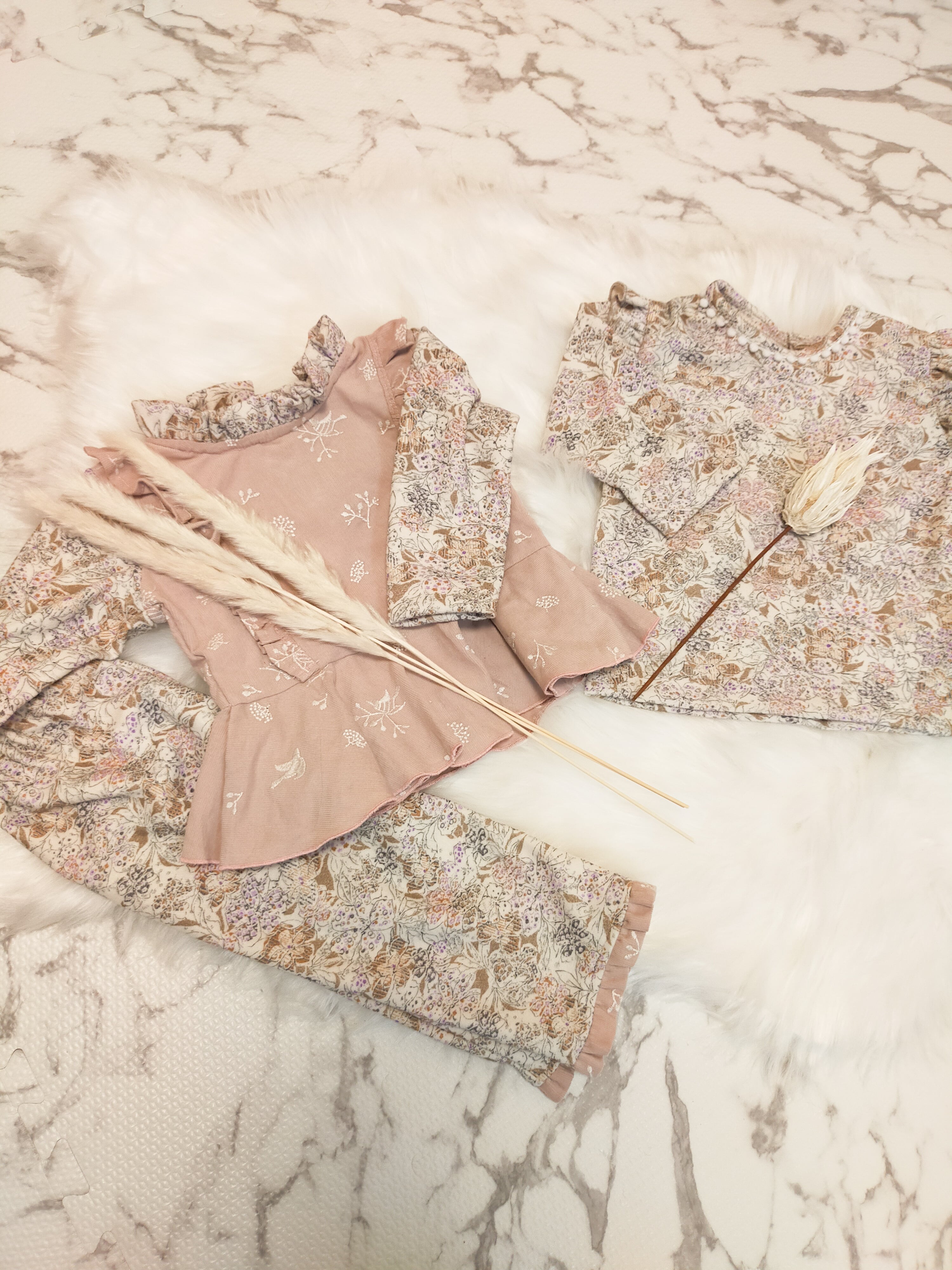 花柄ニットパンツコーデュロイフリル(セットアップ可能)