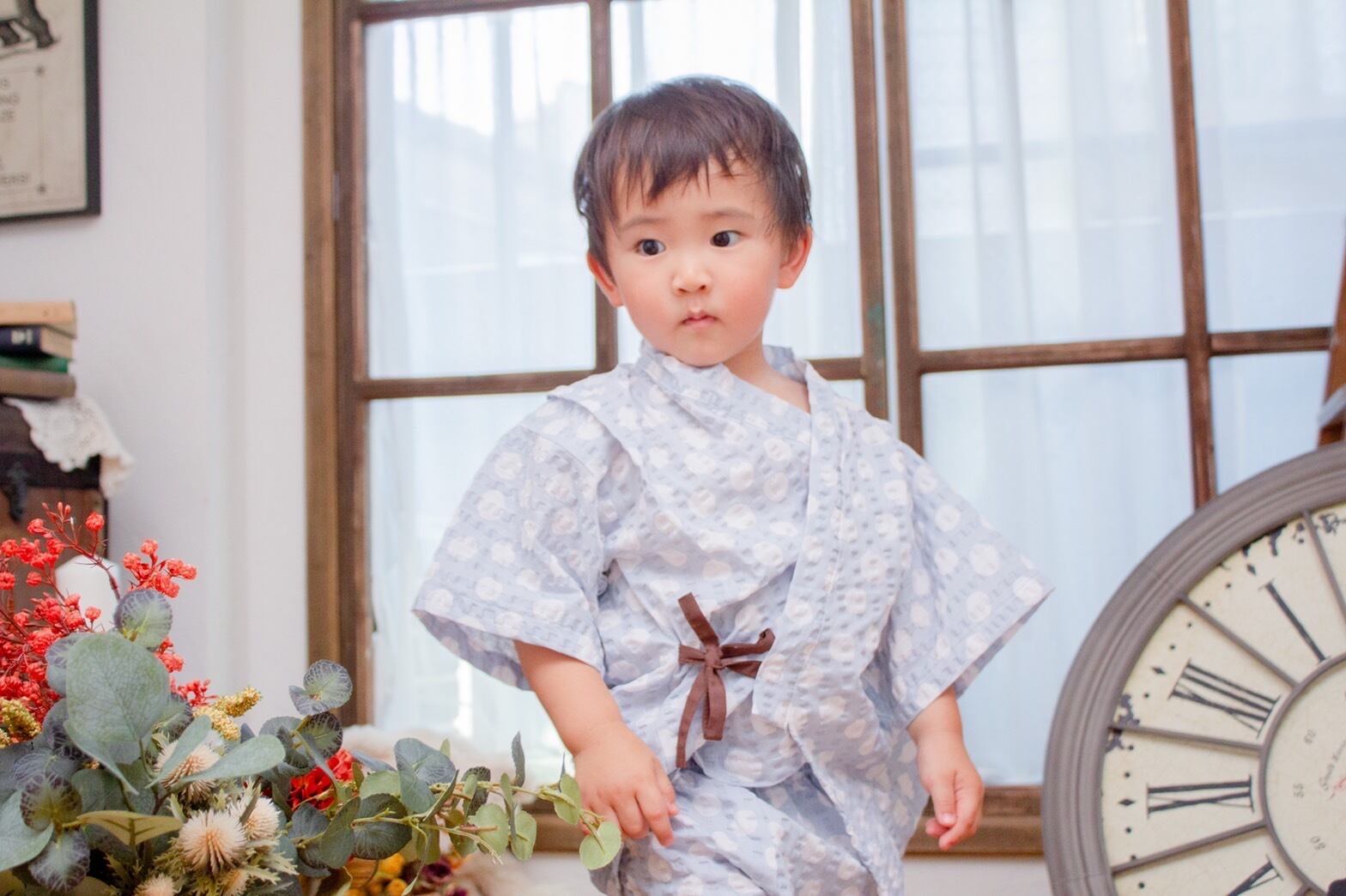ベビー甚平 上下セットとヘッドアクセサリーの3点セットです