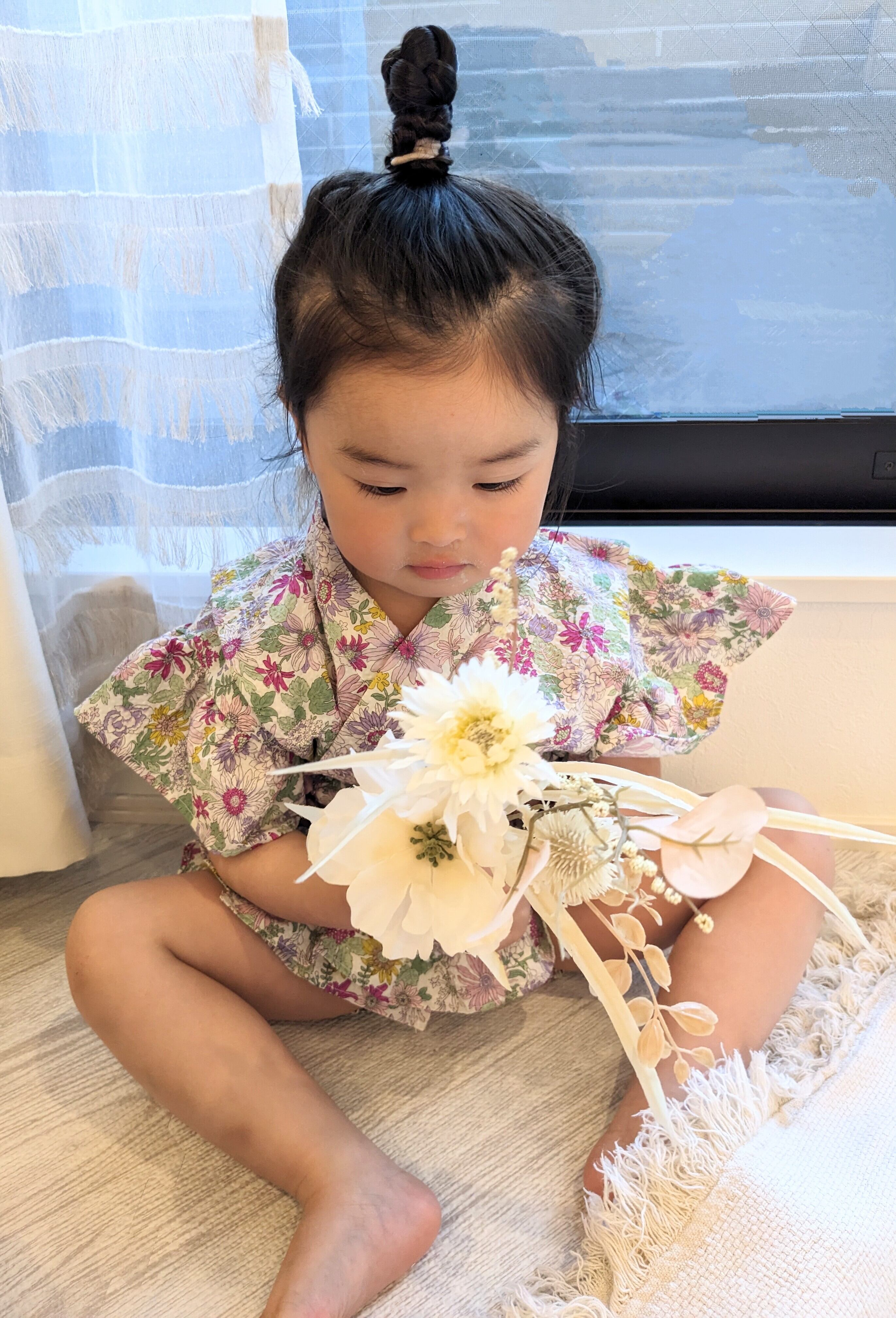 手書き風のお花柄がとってもかわいい甚平 ☆彡