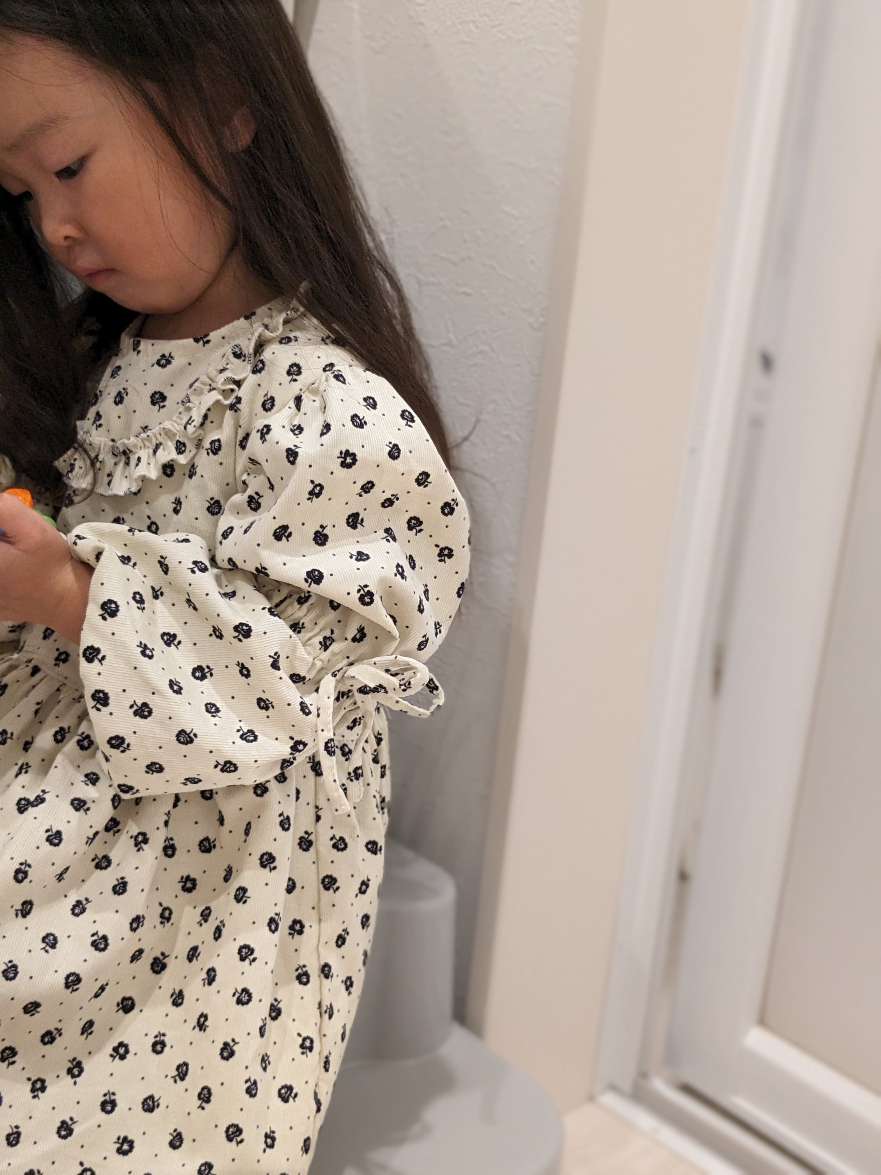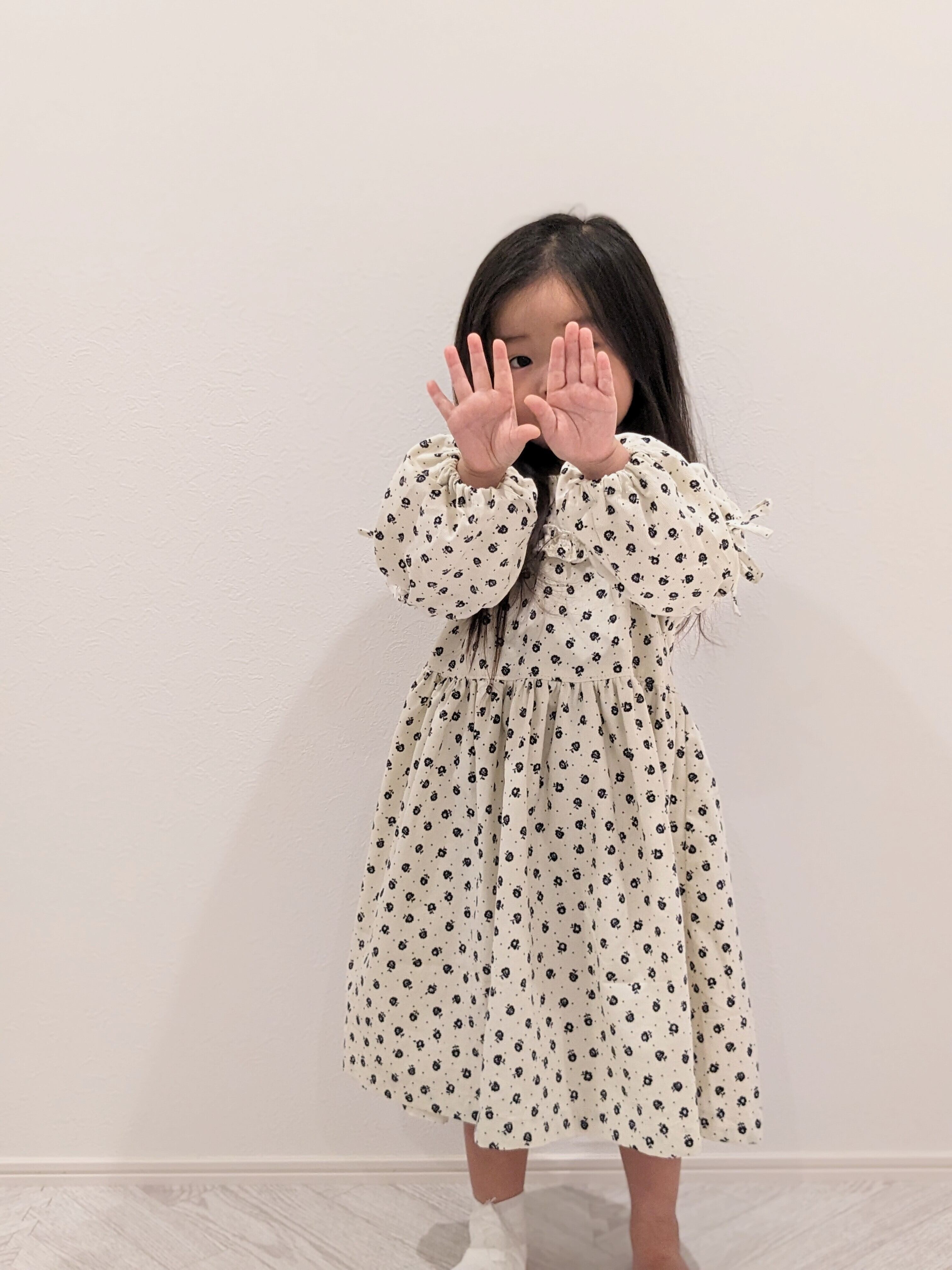 ホワイトコーデュロイ小花柄ワンピース