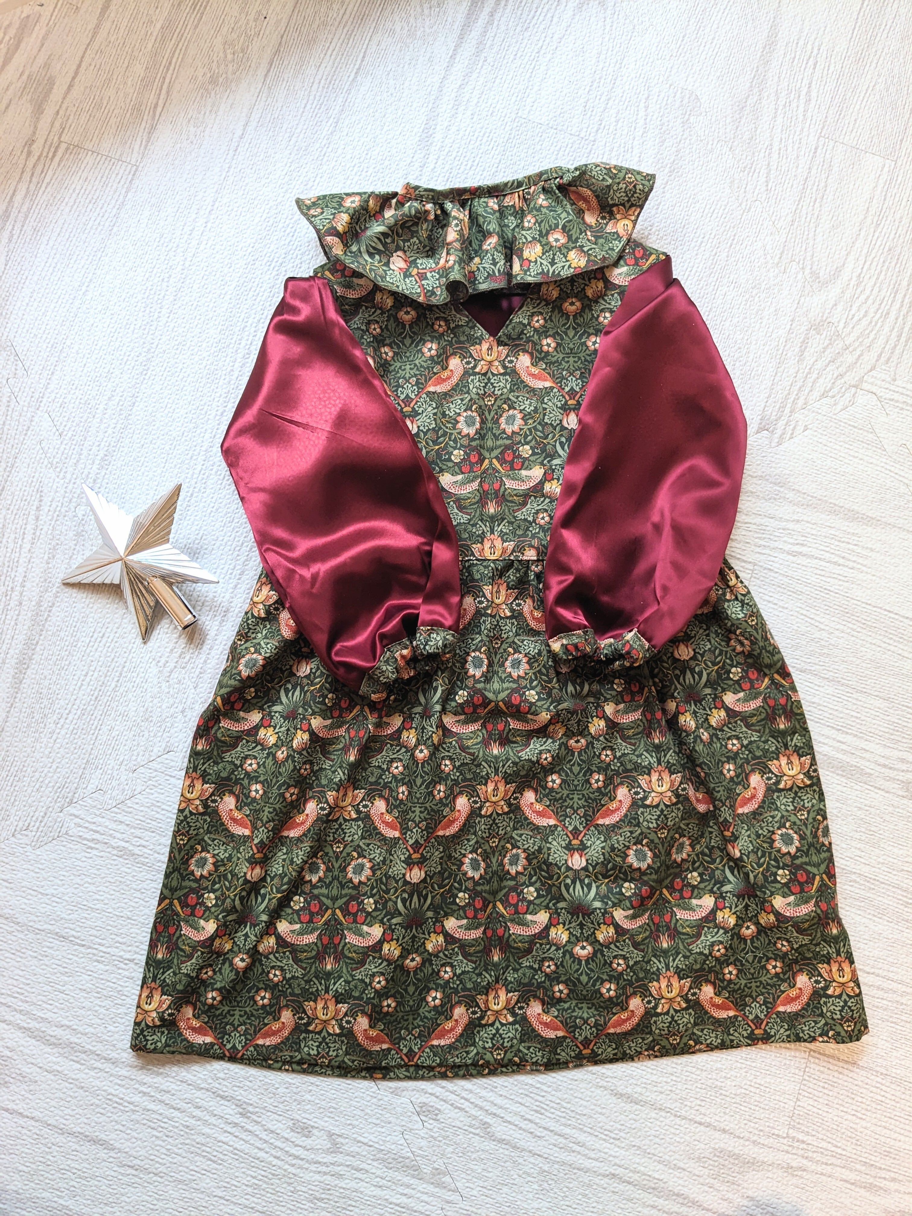 モリスデザインの生地をたっぷりと使用して仕立てた、