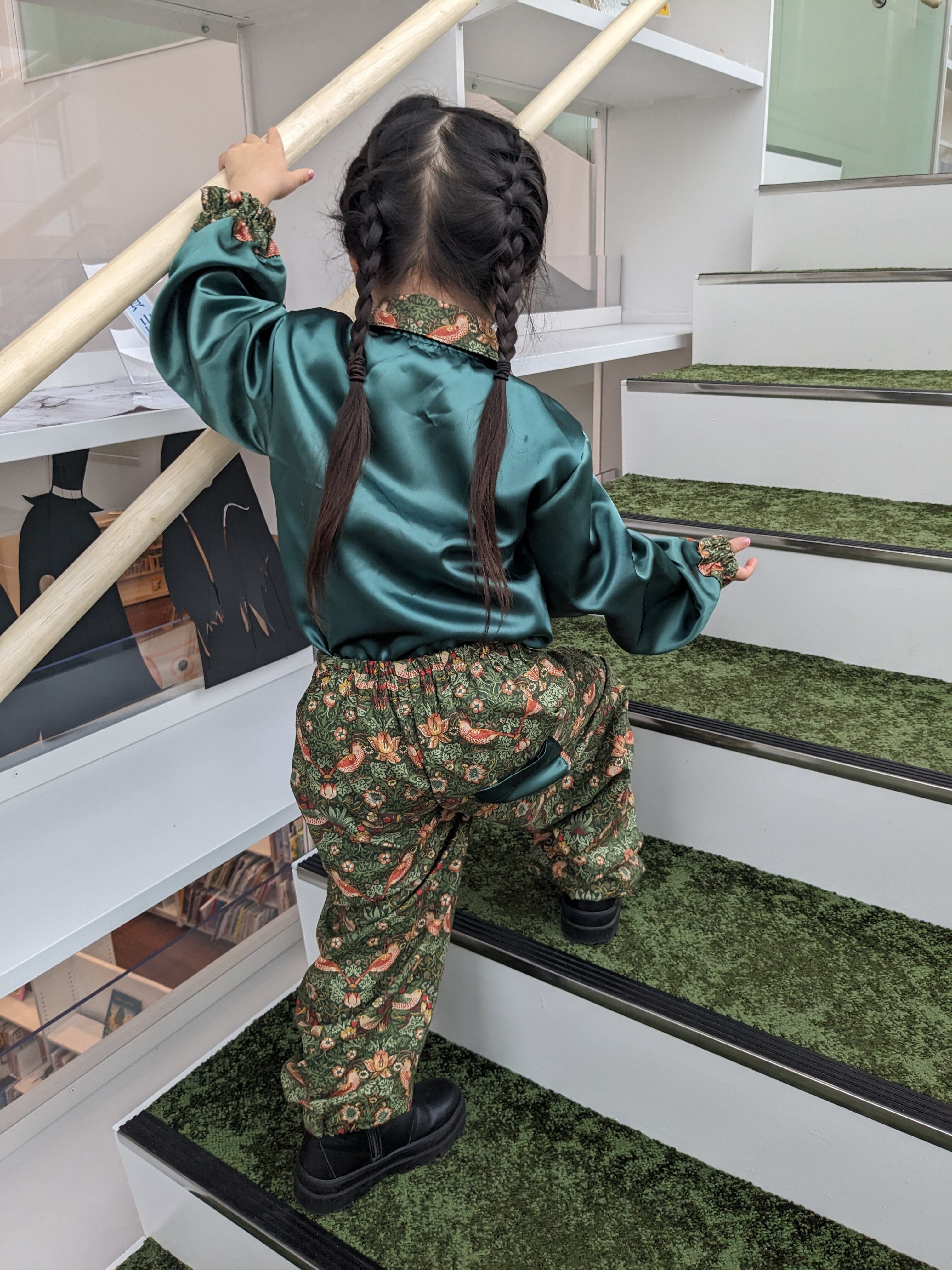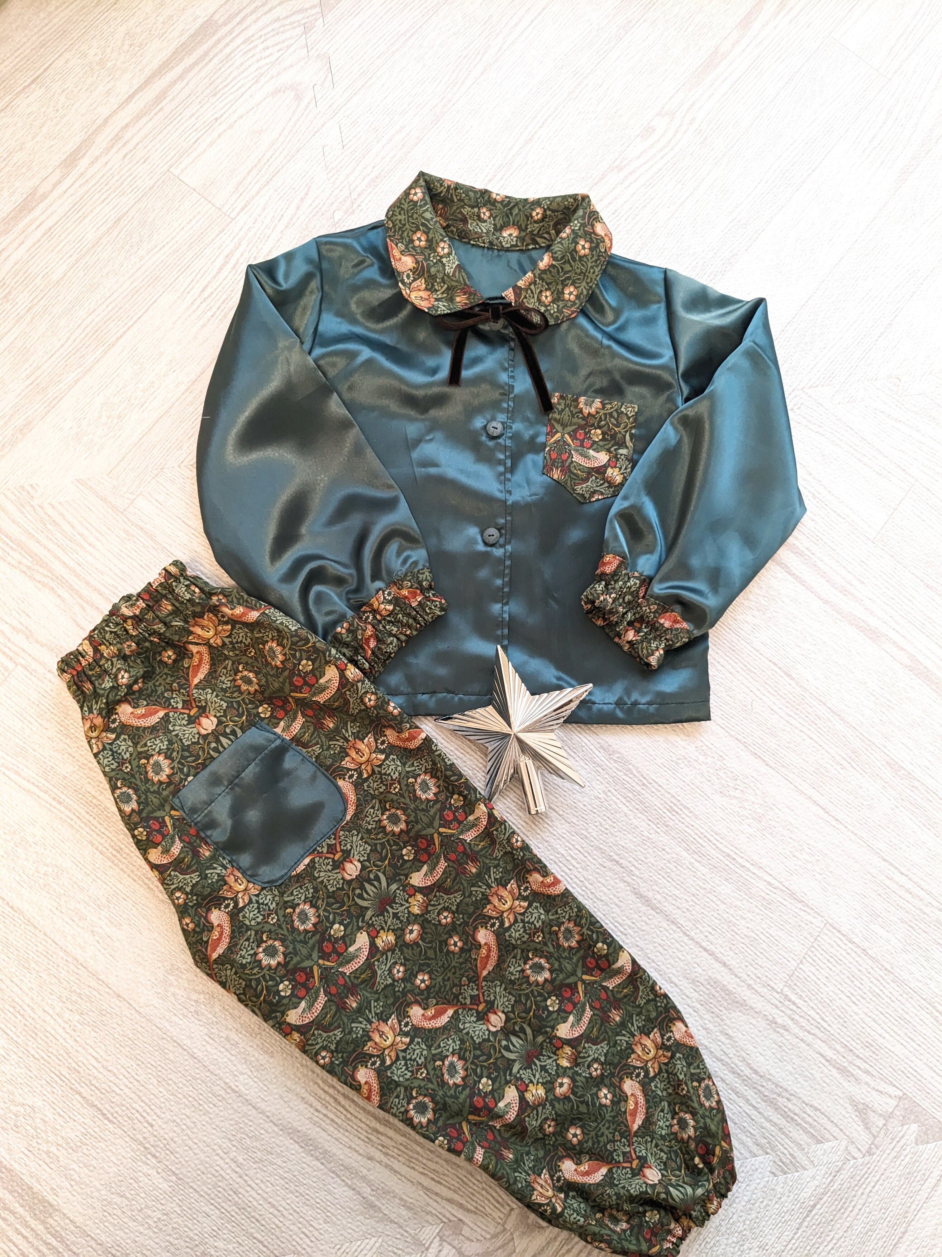 モリスデザインの生地をたっぷりと使用して仕立てた、